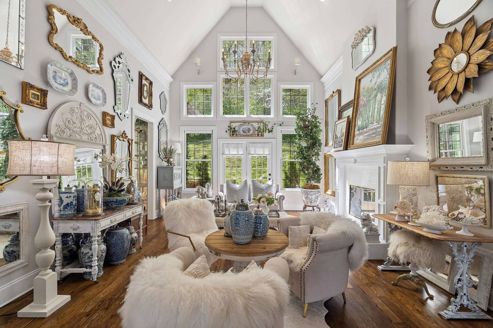 , using GAFA n New Inside, you’ll discover expansive open-floor plans that invite an abundance of natural light and warmth, strategically enhanced by the custom lavender-stone color internal walls that intentionally invoke the mood of calm and serenity in the morning, bright and energetic during the day, and cozy and inviting in the evening. Elegantly tiled fireplaces crafted from mother-of-pearl and black Italian marble. Hardwood floors throughout. 10 to 20 foot vaulted ceilings throughout. The professional interior design decor reflects an admiration for culture, color, and the emotional connection that unites them. Combining feminine and masculine shapes and textures throughout the house pulls the eye from each room into another space, adding dynamism and flow. This sanctuary feels cozy, comfortable, calming, and tranquil. Wishing Trees provides the perfect ambiance for the entrepreneur, executive, or artist who desires a peaceful and scenic environment to live, work, and play. Williamson County schools, and modern conveniences are all nearby: 4 miles to Kroger grocery store or they will deliver! 22 miles to Downtown Nashville, 7 miles to Downtown Franklin, and 8 miles to historic Leipers Fork Village. The owners have spent the last 8 years and close to $1M in interior and landscape improvements. A new roof was installed on April 19, 2026.
